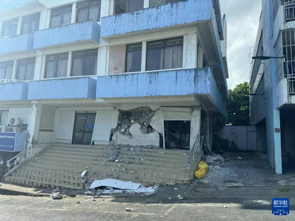 12月17日,在瓦努阿图首都维拉港,一处建筑物在地震中受损。 新华社发