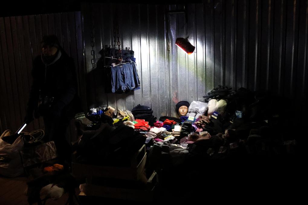 12月4日,在乌克兰基辅街头,一处货摊使用充电灯照明。新华社发(彼得·德鲁克摄)