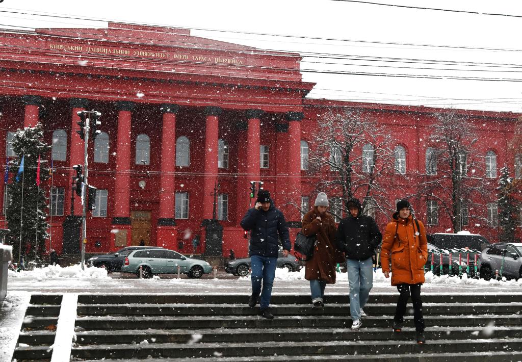 11月21日,在乌克兰首都基辅,人们经过国立基辅大学。新华社发(罗曼·佩图什科夫摄)