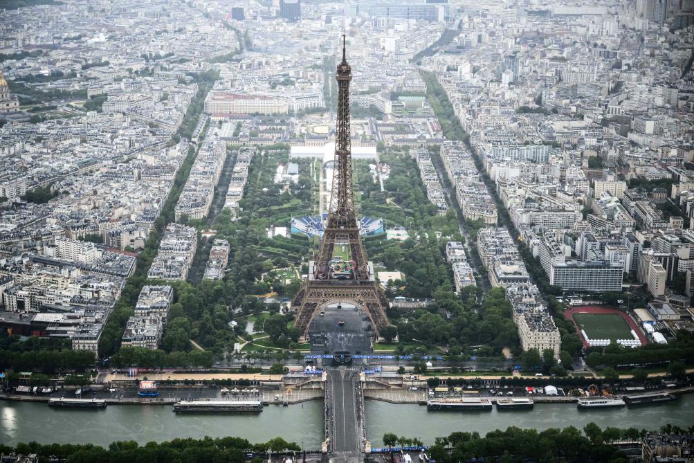 俯瞰法国巴黎埃菲尔铁塔(7月26日摄)。新华社发