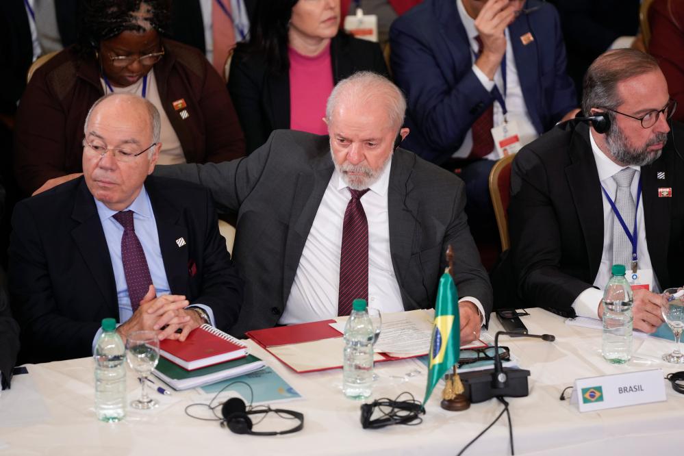 12月6日,巴西总统卢拉(前排中)在乌拉圭首都蒙得维的亚出席南方共同市场首脑会议。新华社发(尼古拉斯·塞拉亚摄)