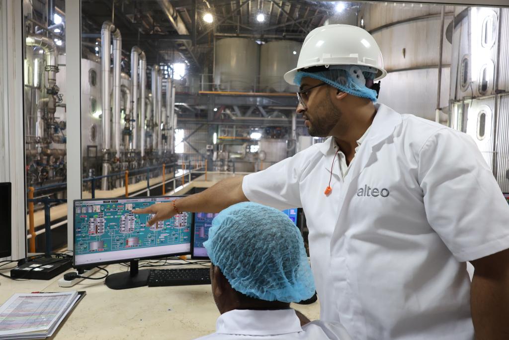 2024年7月24日,在毛里求斯东部弗拉克区一家糖厂,工人在车间内监测蔗糖的生产。新华社记者凌馨摄