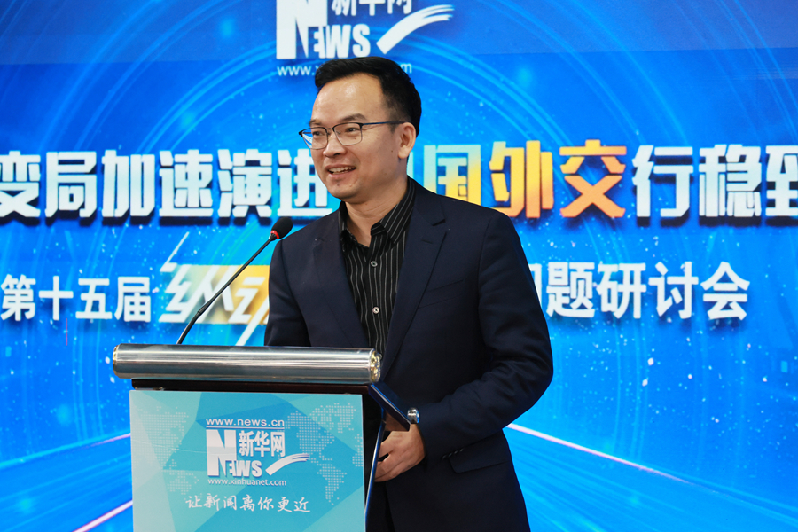 1月2日,新华网第十五届“纵论天下”国际问题研讨会在北京新华网总部举办。图为中国国际问题研究院副院长刘卿在进行下半场主题演讲。新华网 杨霁昕 摄