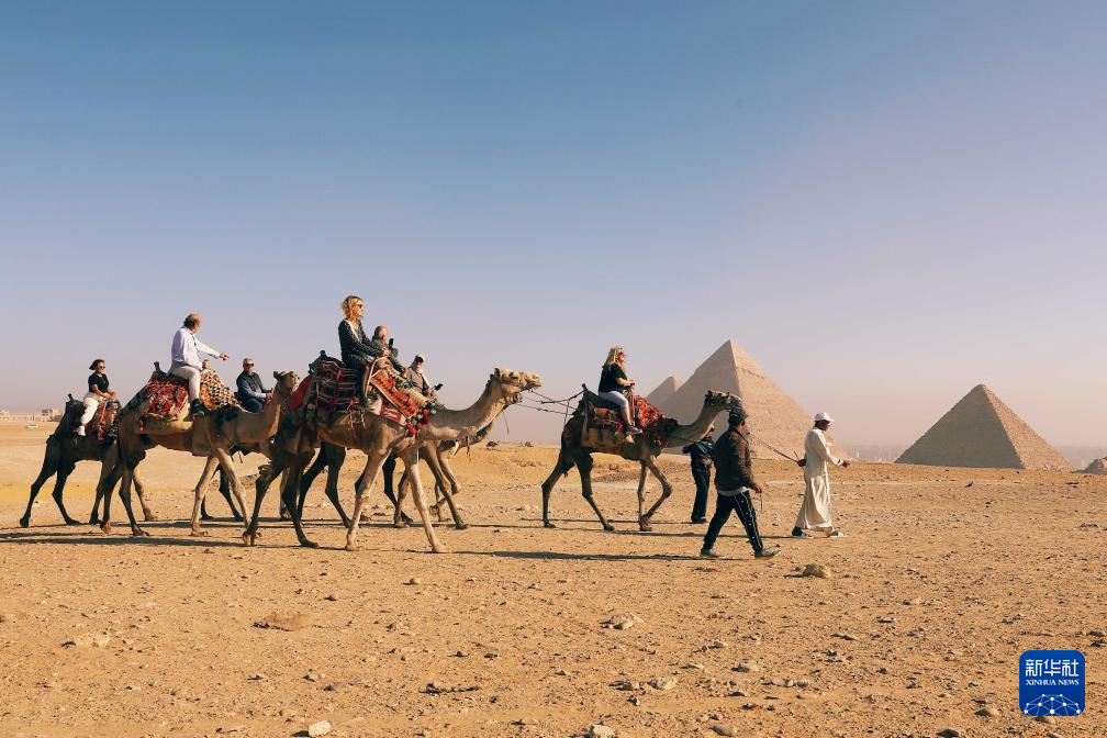 1月2日,游客在埃及吉萨参观埃及吉萨金字塔群。新华社发(艾哈迈德·戈马摄)