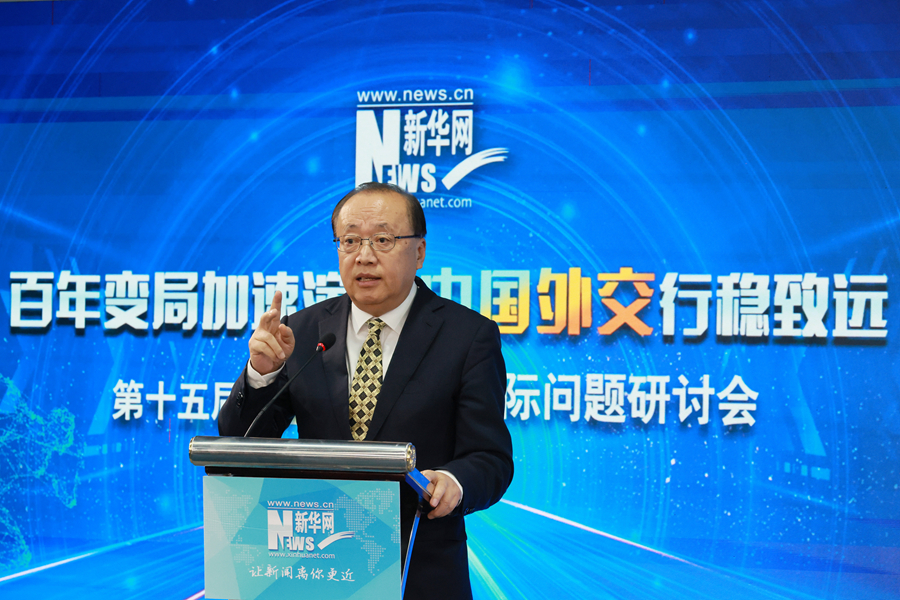 1月2日,新华网第十五届“纵论天下”国际问题研讨会在北京新华网总部举办。图为宁夏大学中国阿拉伯国家研究院院长李绍先在进行上半场主题演讲。新华网 杨霁昕 摄