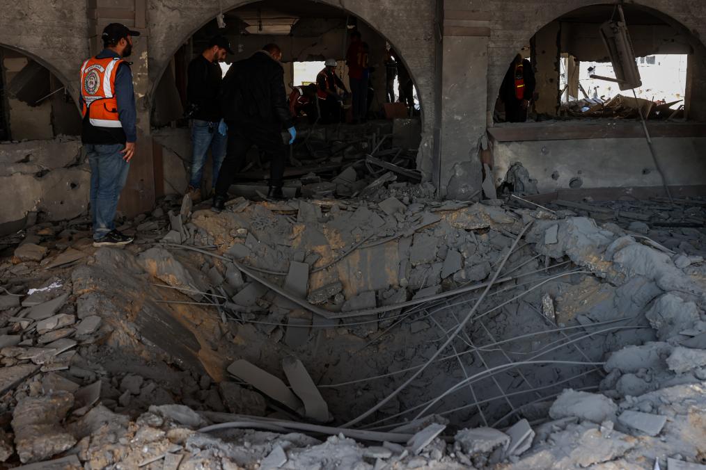 1月3日,在加沙地带中部迈加齐难民营,当地民众查看被以军袭击毁坏的房屋。新华社发(里泽克·阿卜杜勒贾瓦德 摄)