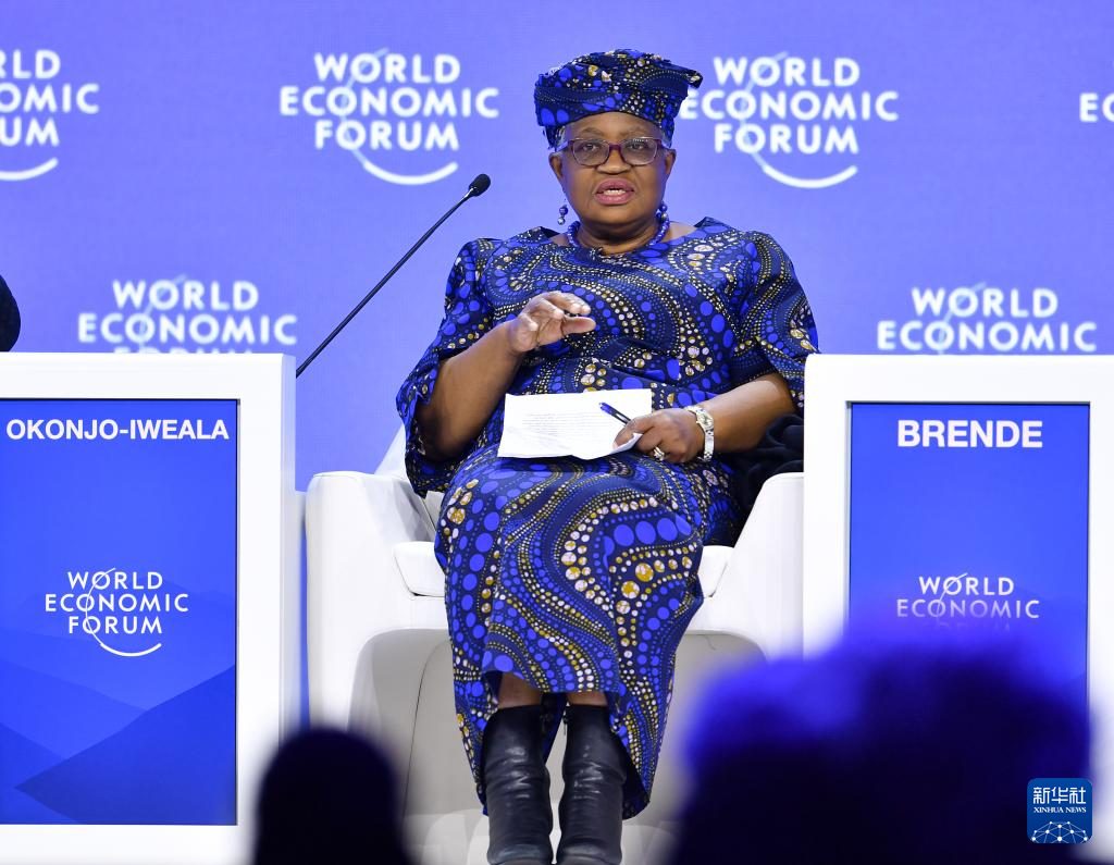 1月21日,在瑞士达沃斯,世界贸易组织总干事伊维拉在世界经济论坛2025年年会上讲话。新华社记者 连漪 摄