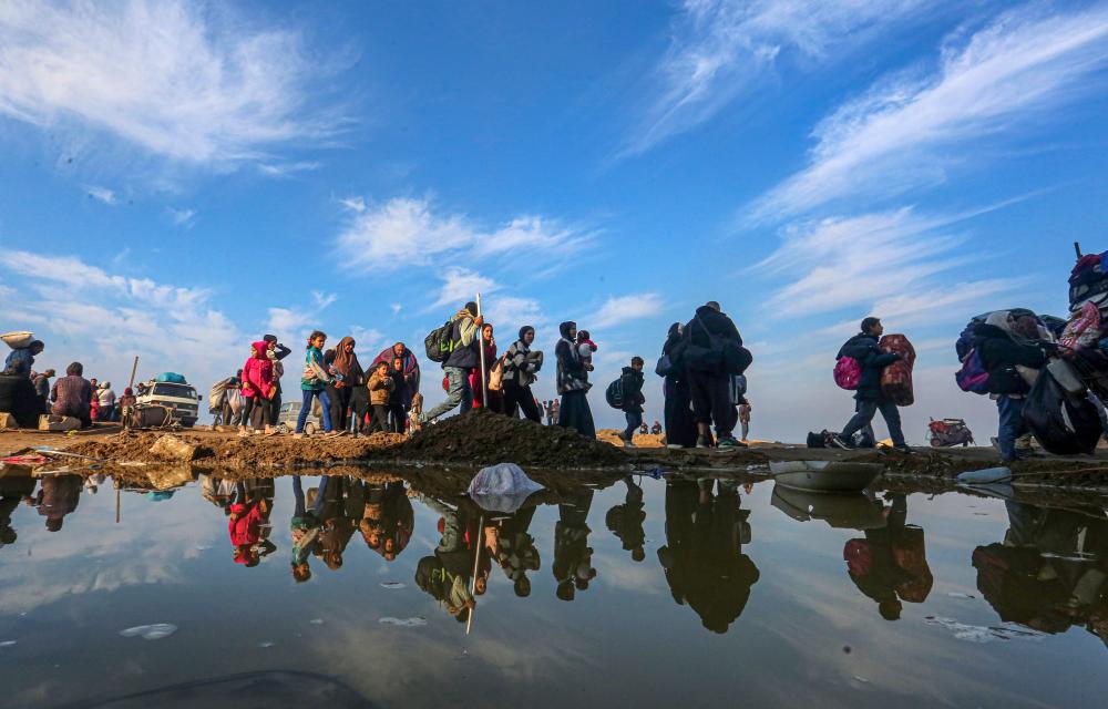 1月28日,在加沙地带中部努赛赖特难民营附近,流离失所的民众行进在返回加沙地带北部的路途上。新华社发(里泽克·阿卜杜勒贾瓦德摄)