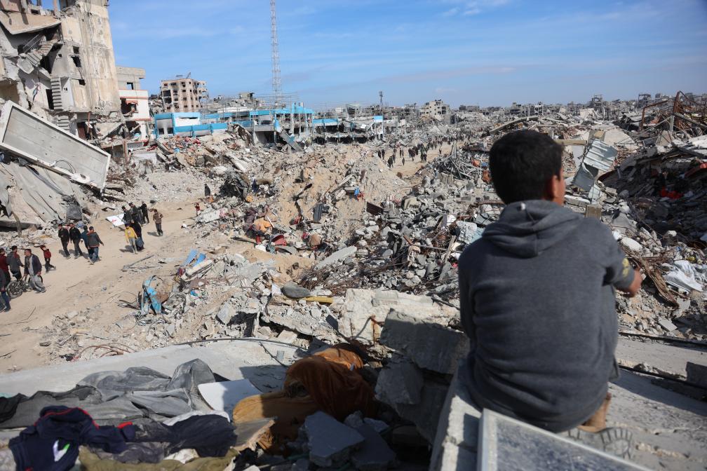 新一轮巴以冲突爆发后,阿卜杜·拉赫曼全家逃到位于加沙地带北部的杰巴利耶难民营避难。如今,一群孩童在难民营旁的废墟上奔跑嬉闹,享受着没有恐怖爆炸声的冬日。“此刻脚下的瓦砾,又曾是谁的家?”和记者攀谈之间,拉赫曼喃喃自语。