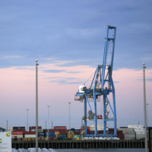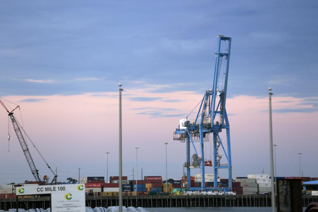 这是2024年10月1日在美国路易斯安那州新奥尔良市港口拍摄的起重机和集装箱。新华社发(魏兰摄)