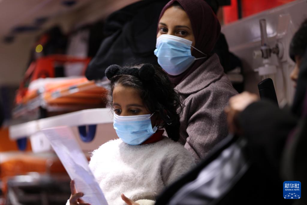 3月4日,来自加沙地带的患病儿童抵达约旦与巴勒斯坦约旦河西岸之间的侯赛因国王桥边境口岸。新华社发(默罕默德·阿布·古什摄)