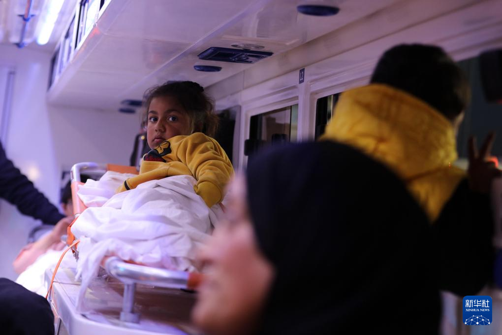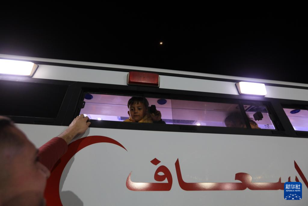 3月4日,载有来自加沙地带患病儿童及其家属的救护车抵达约旦与巴勒斯坦约旦河西岸之间的侯赛因国王桥边境口岸。新华社发(默罕默德·阿布·古什摄)