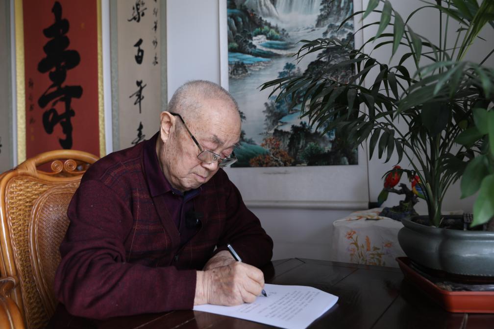 飞行教员管怀忠在邀请信上签下自己的名字。新华社记者 徐伟 摄