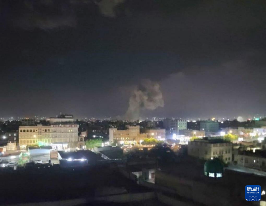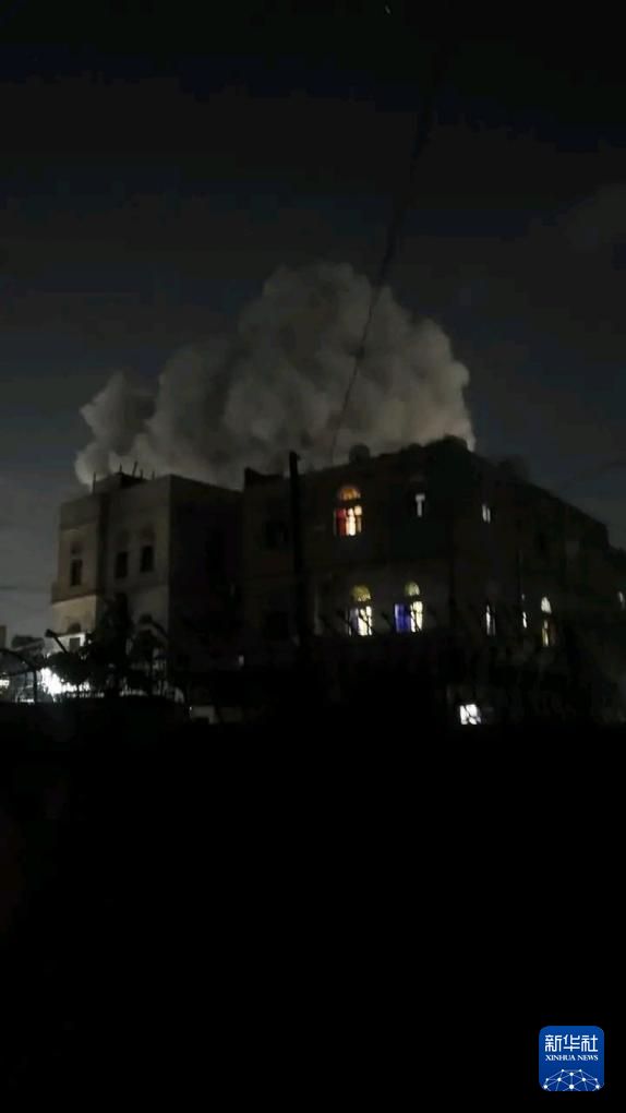 3月15日,也门首都萨那一处地点遭到空袭后升起浓烟(手机拍摄)。新华社发