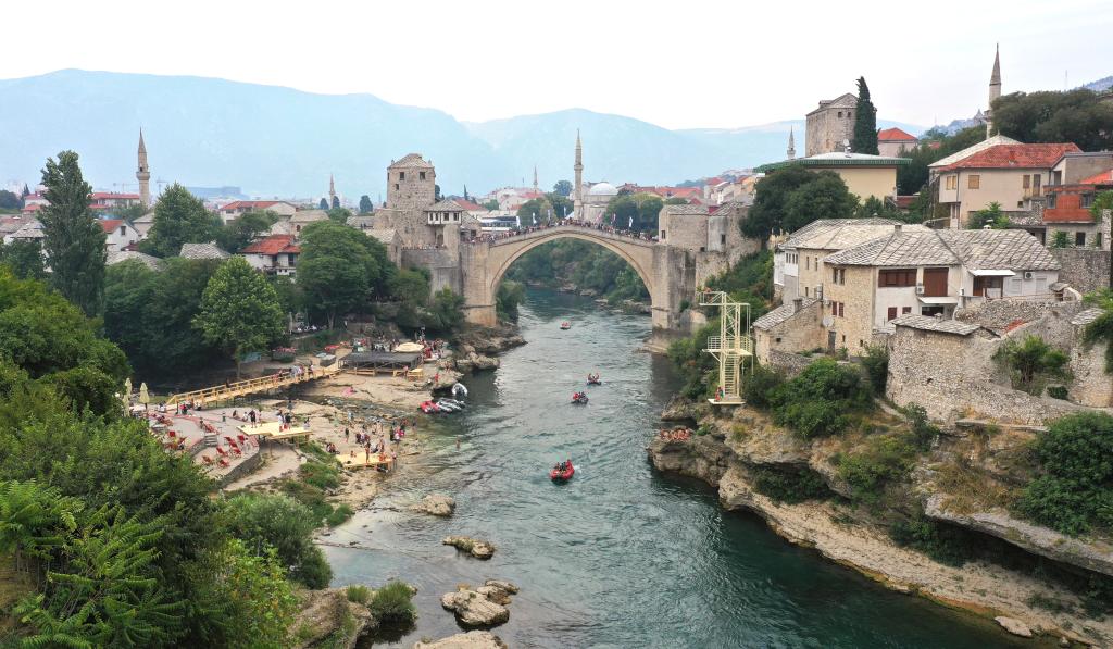 莫斯塔尔古桥在1993年波黑战争期间被炸断,2004年重建开放,次年成为波黑首个入选联合国教科文组织《世界遗产名录》的古迹。莫斯塔尔古桥的修复不仅连接了河流东西两岸的交通,也被视作弥合两岸不同族群隔阂的纽带。