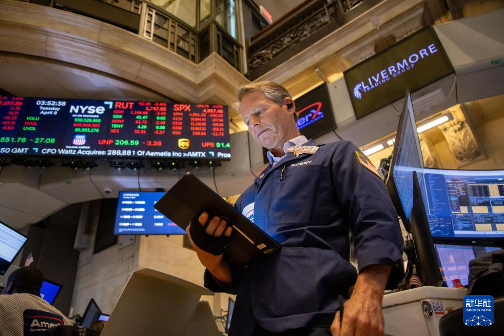 4月8日,交易员在美国纽约证券交易所交易大厅工作。新华社发(郭克摄)