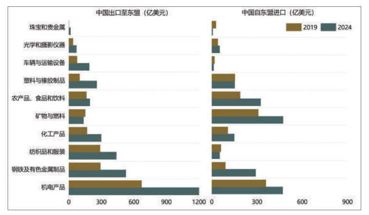 图表1 :2019年与2024年中国-东盟主要品类贸易规模对比