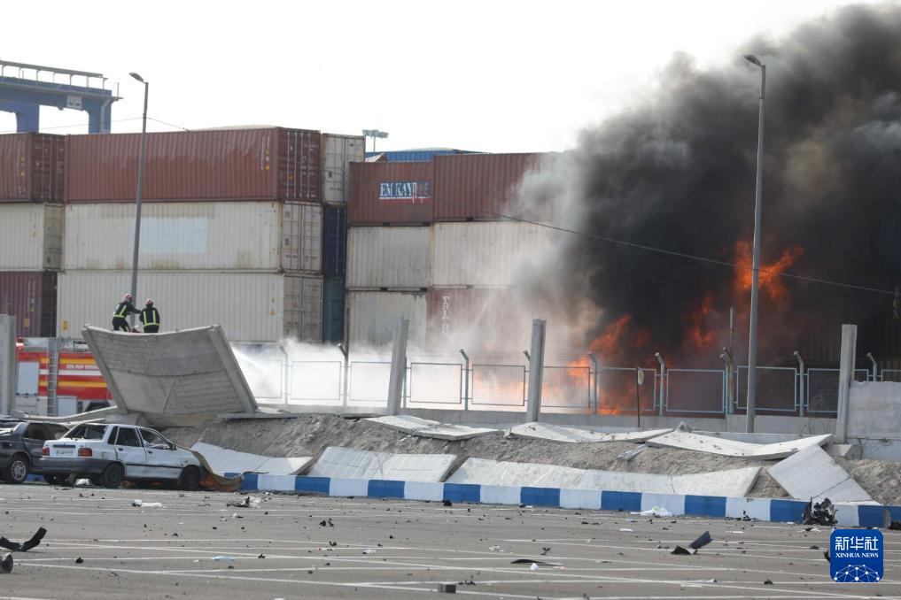 4月26日,救援人员在伊朗南部沙希德拉贾伊港的爆炸现场开展救援工作。新华社发(伊朗迈赫尔媒体集团供图)