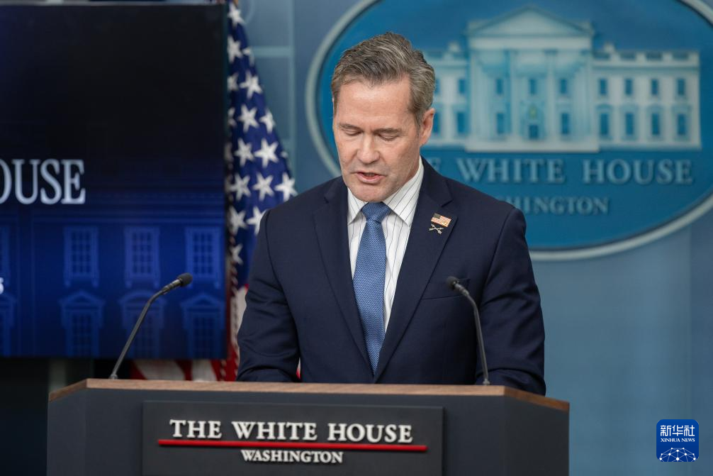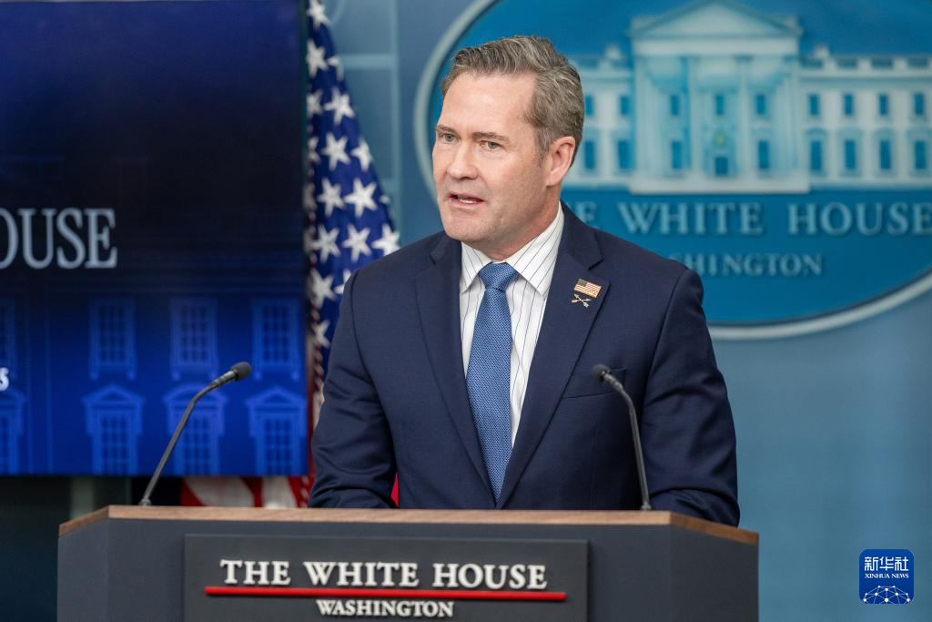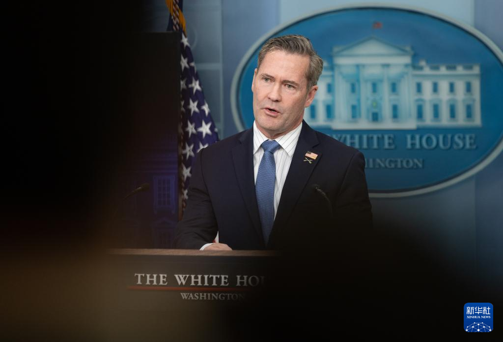 这是美国总统国家安全事务助理迈克尔·华尔兹在华盛顿白宫出席记者会的资料照片(2月20日摄)。新华社记者 胡友松 摄