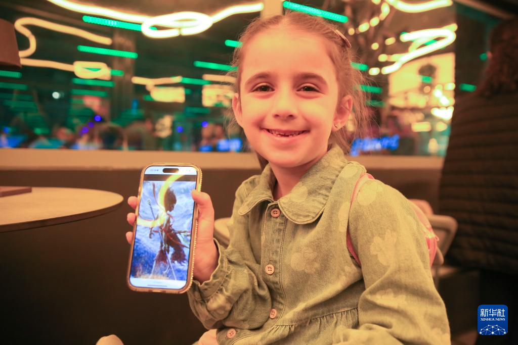 4月30日,在马耳他圣朱利安斯的伊甸影院,一名女孩展示手机里的哪吒图片。新华社记者 陈文仙 摄