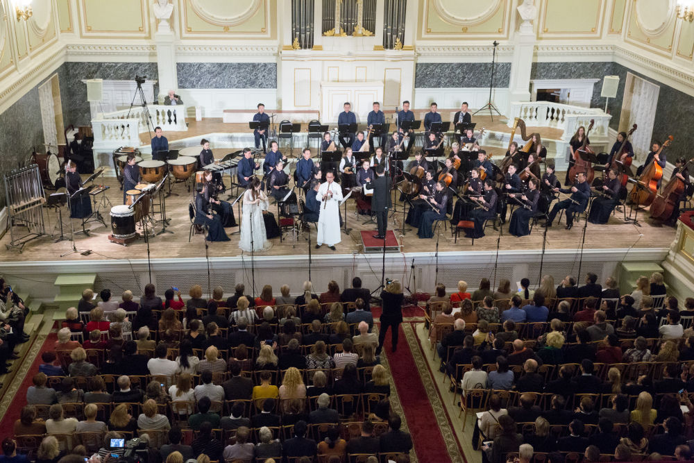 2019年11月13日,在俄罗斯圣彼得堡卡贝拉音乐厅,上海民族乐团与安德烈耶夫国立模范民族乐团的艺术家共同为观众献上了一场名为《海上生民乐·和平颂》的精彩音乐会,开启了上海民族乐团2019俄罗斯巡演之旅。