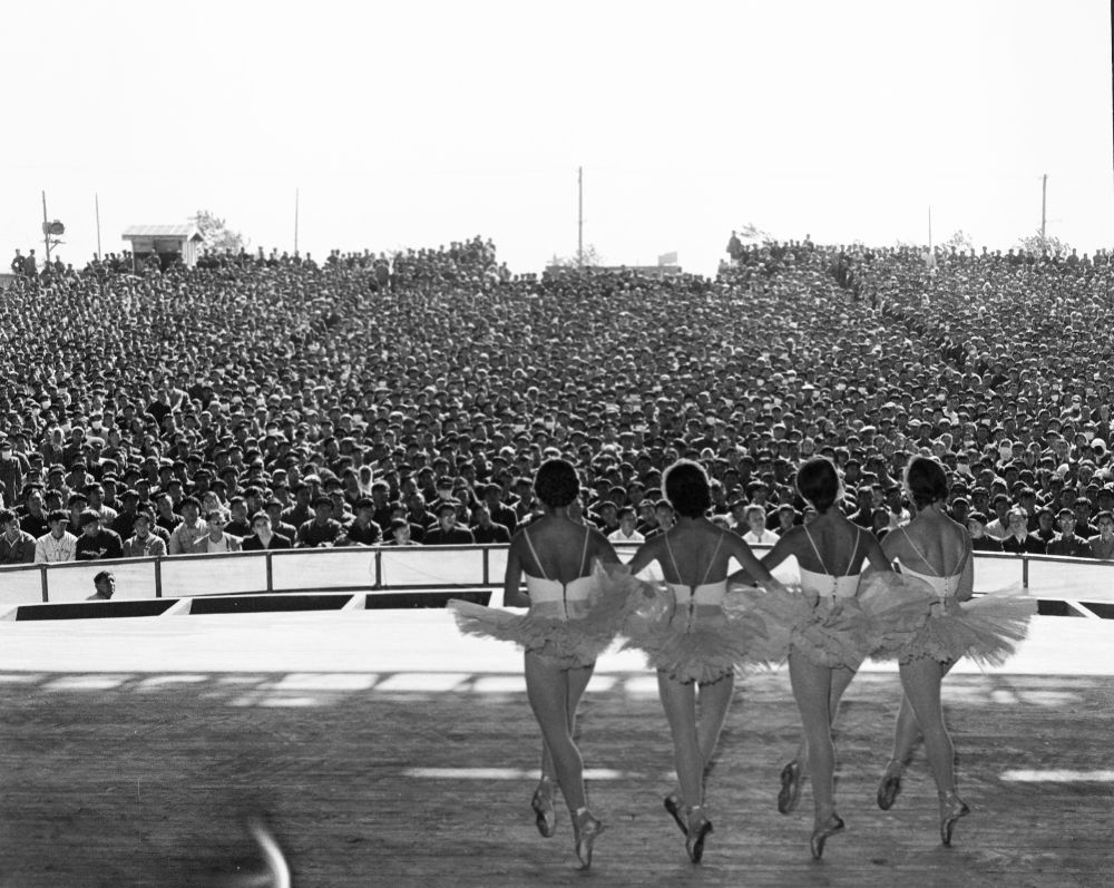 1957年10月,苏联国立新西伯利亚歌剧芭蕾舞剧院为北京石景山钢铁厂工人演出。