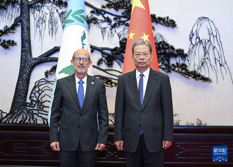 5月14日,全国人大常委会委员长赵乐际在北京会见中美洲议会议长埃尔南德斯。新华社记者 张领 摄