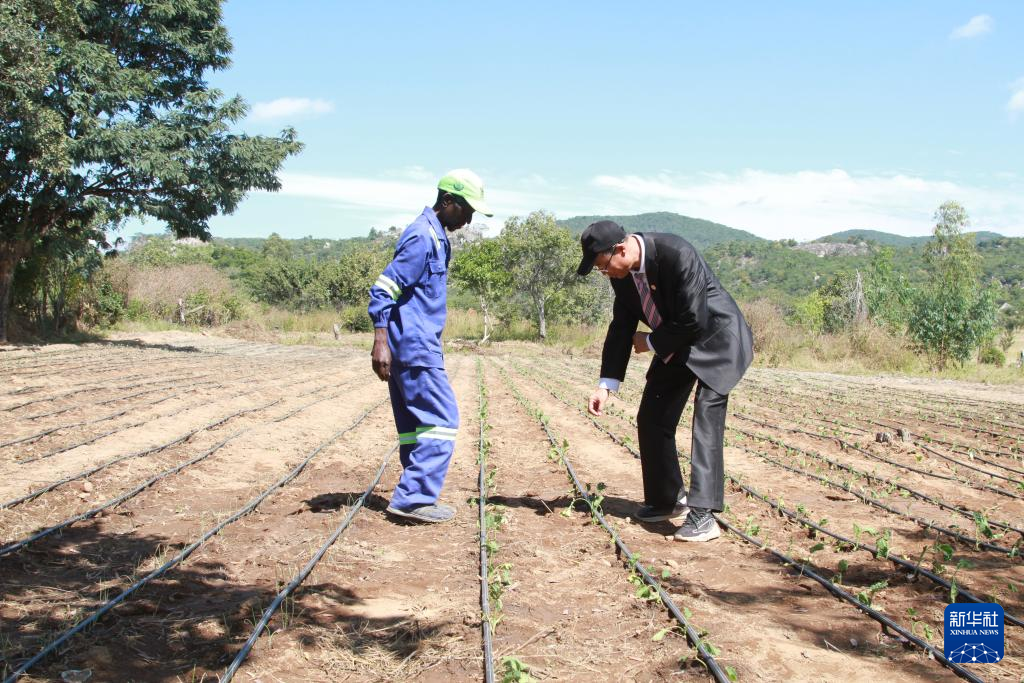 5月14日,在位于津巴布韦中马绍纳兰省的中国—津巴布韦农业合作示范村,中方农业专家与当地村民交谈。新华社发(塔法拉 摄)