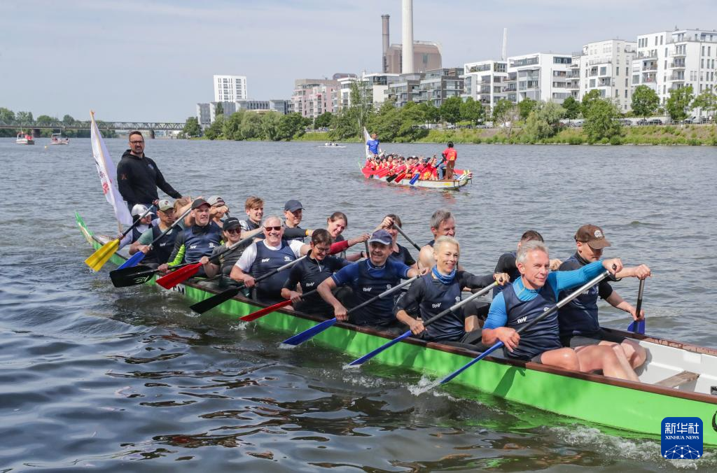 5月24日,人们在德国法兰克福美因河上参加第二届法兰克福国际龙舟友谊赛。新华社记者 张帆 摄