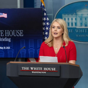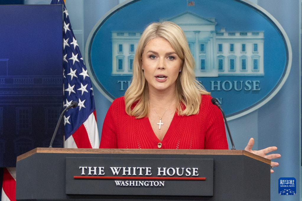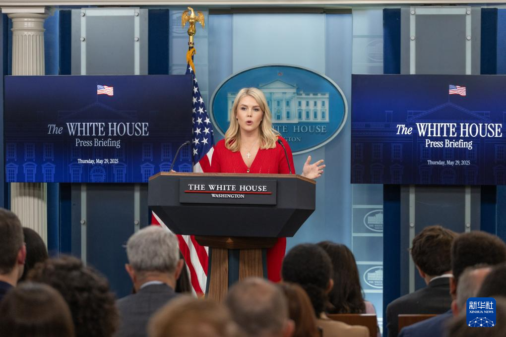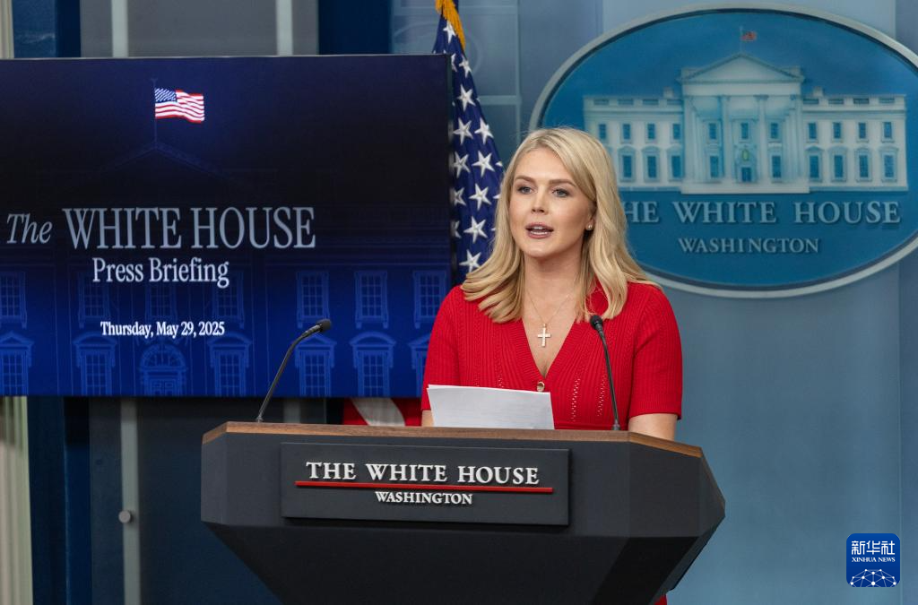 5月29日,在美国华盛顿白宫,白宫新闻秘书卡罗琳·莱维特出席记者会。