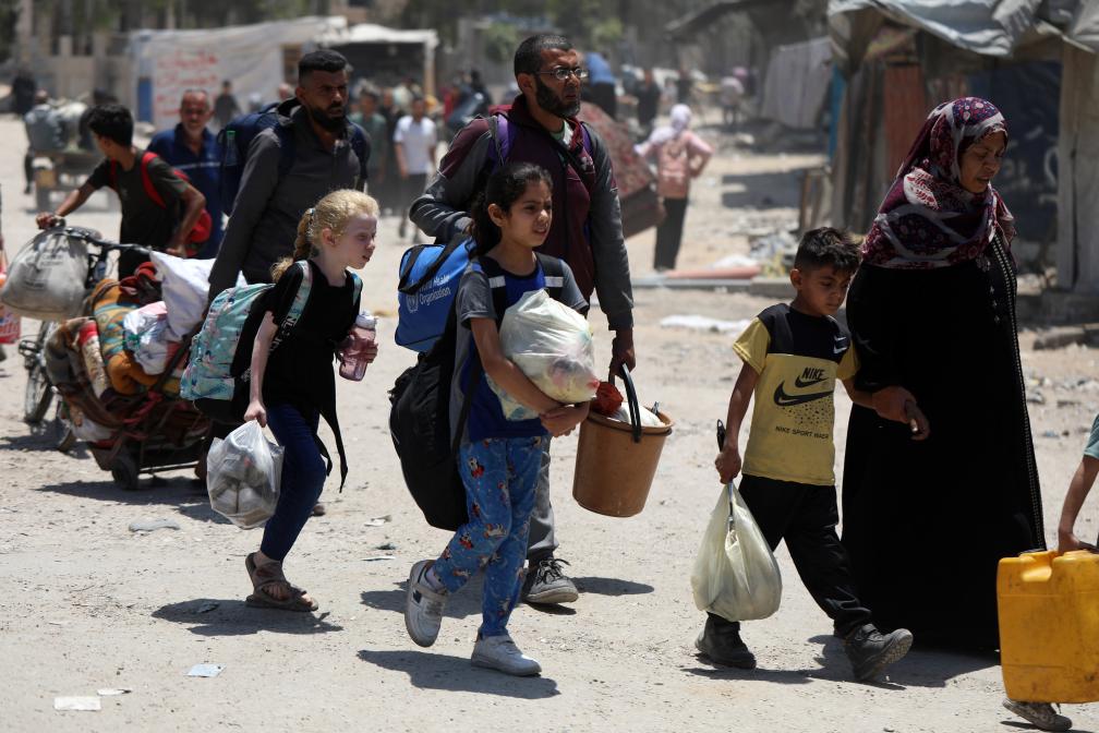 5月30日,在加沙地带北部杰巴利耶难民营,巴勒斯坦人逃离家园。新华社发(里泽克·阿卜杜勒贾瓦德摄)