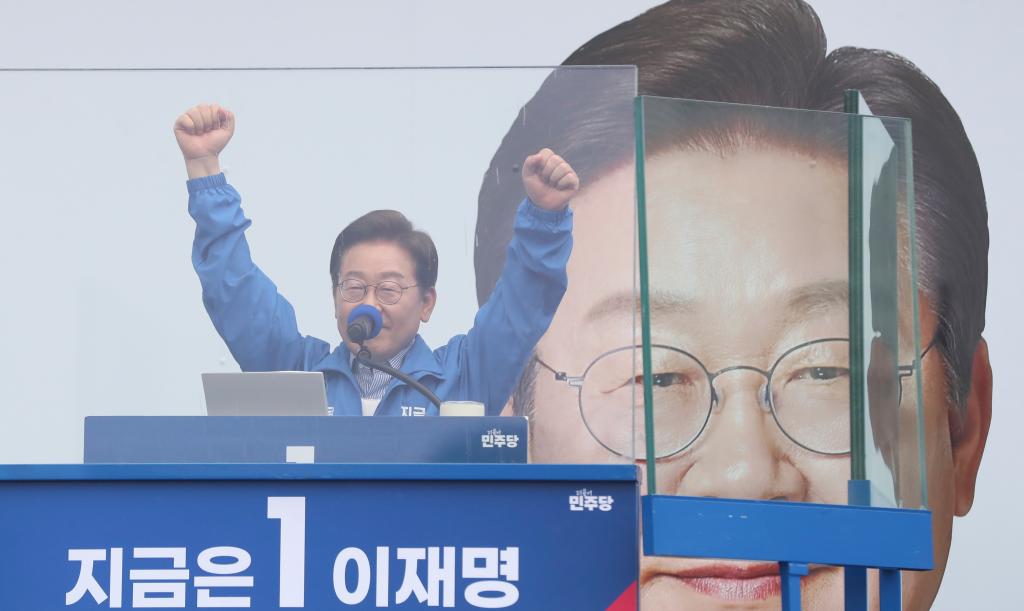 6月2日,韩国共同民主党候选人李在明在首尔参加竞选活动。新华社记者姚琪琳摄