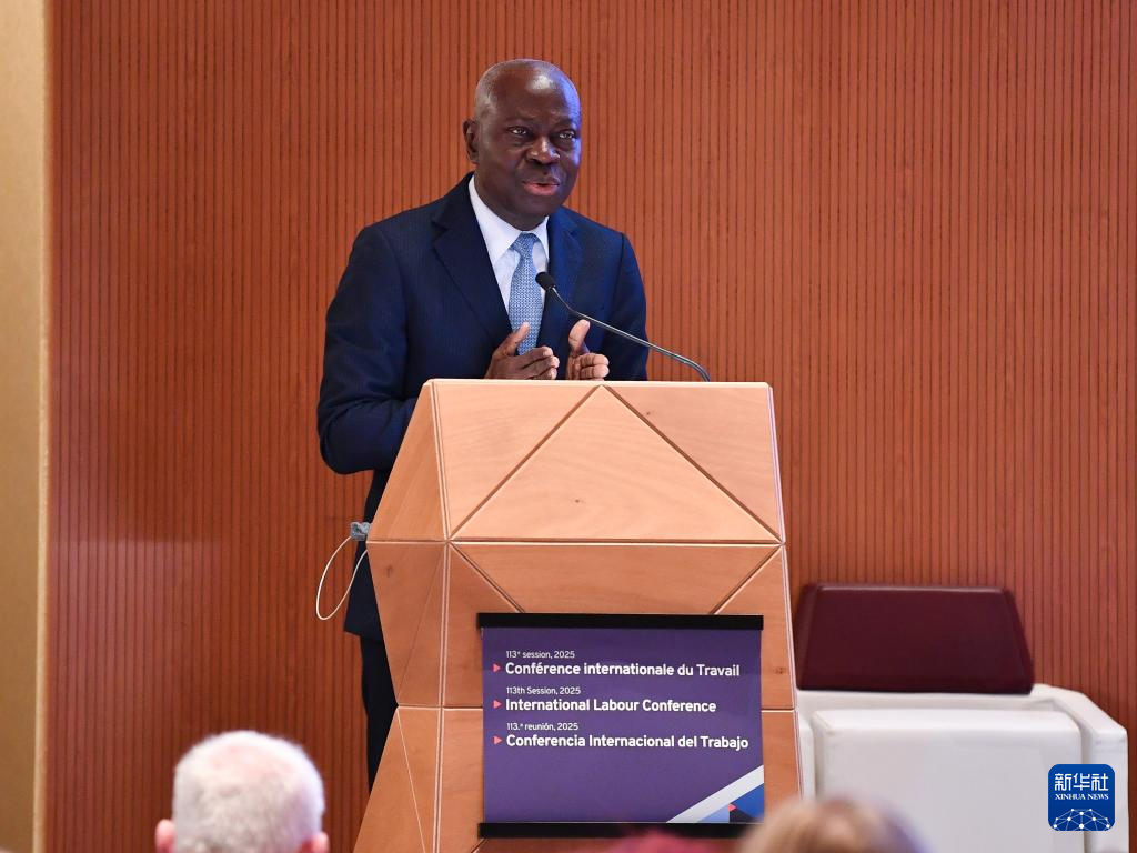 6月2日,国际劳工组织总干事洪博在瑞士日内瓦举行的国际劳工大会上讲话。新华社记者 连漪 摄