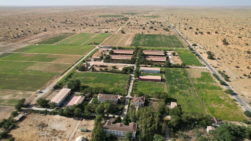 这是2025年1月18日在毛里塔尼亚伊迪尼村拍摄的中国援毛里塔尼亚畜牧业技术示范中心(无人机照片)。新华社记者 司源 摄