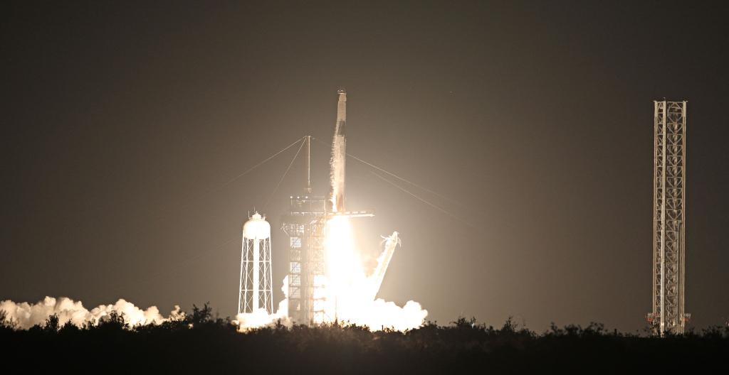 3月31日,美国太空探索技术公司的“猎鹰9”火箭携“龙”飞船从佛罗里达州肯尼迪航天中心发射升空。新华社/法新