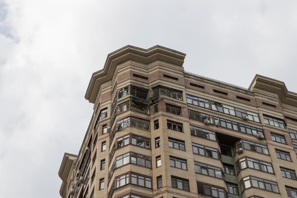 这是3月11日在俄罗斯莫斯科州东南部拍摄的因乌克兰无人机袭击而受损的住宅楼。新华社记者白雪骐摄