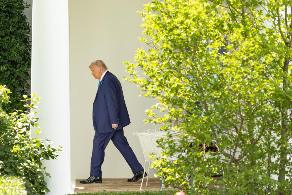 6月6日,在美国华盛顿白宫,美国总统特朗普走向南草坪准备登机。新华社记者胡友松摄