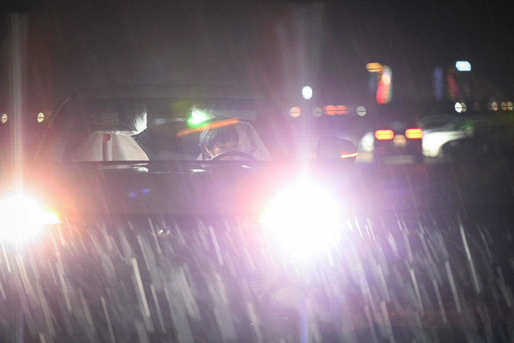 ↑高云驾驶出口车辆在风雨中安全抵达哈方停车场。