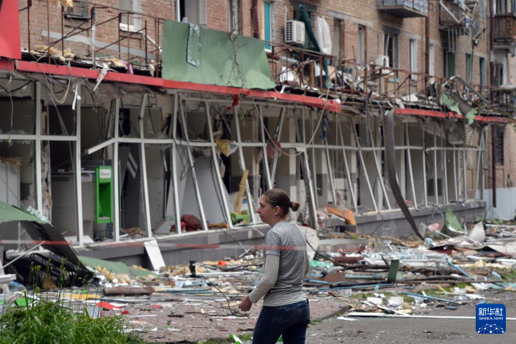 这是6月17日在乌克兰基辅市索洛缅斯基区拍摄的受损建筑。 新华社发(彼得·德鲁克摄)