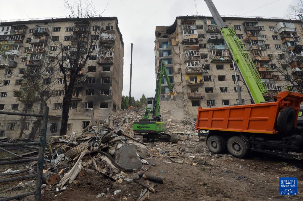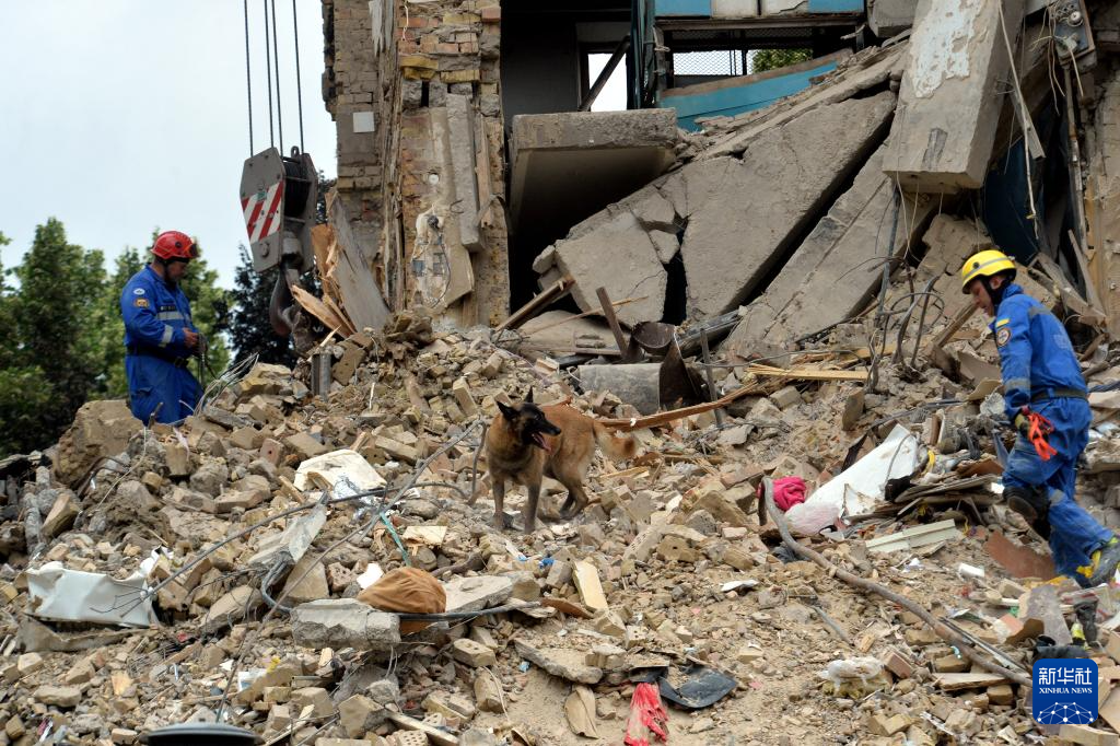 6月17日,救援人员在乌克兰基辅市索洛缅斯基区遭空袭的居民楼寻找幸存者。 新华社发(彼得·德鲁克摄)