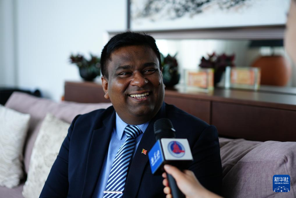 6月10日,在斯里兰卡首都科伦坡,斯里兰卡中国友好协会秘书长普拉萨德·维杰苏里亚接受新华社记者专访。新华社发