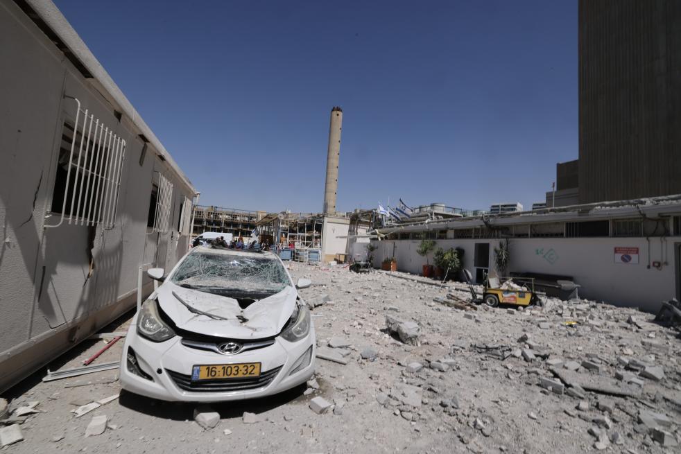 这是6月19日在以色列南部贝尔谢巴拍摄的在导弹袭击中受损的医学中心。新华社/基尼图片社