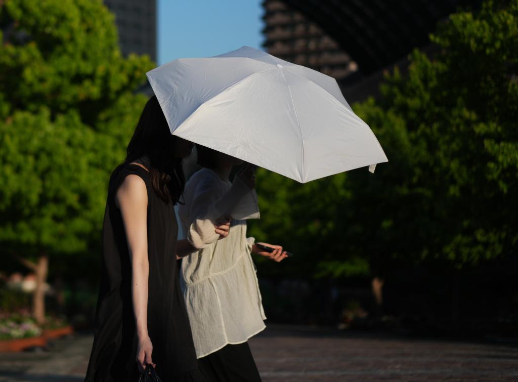 2025年6月18日,在日本东京,行人撑伞在街头行走。新华社记者贾浩成摄