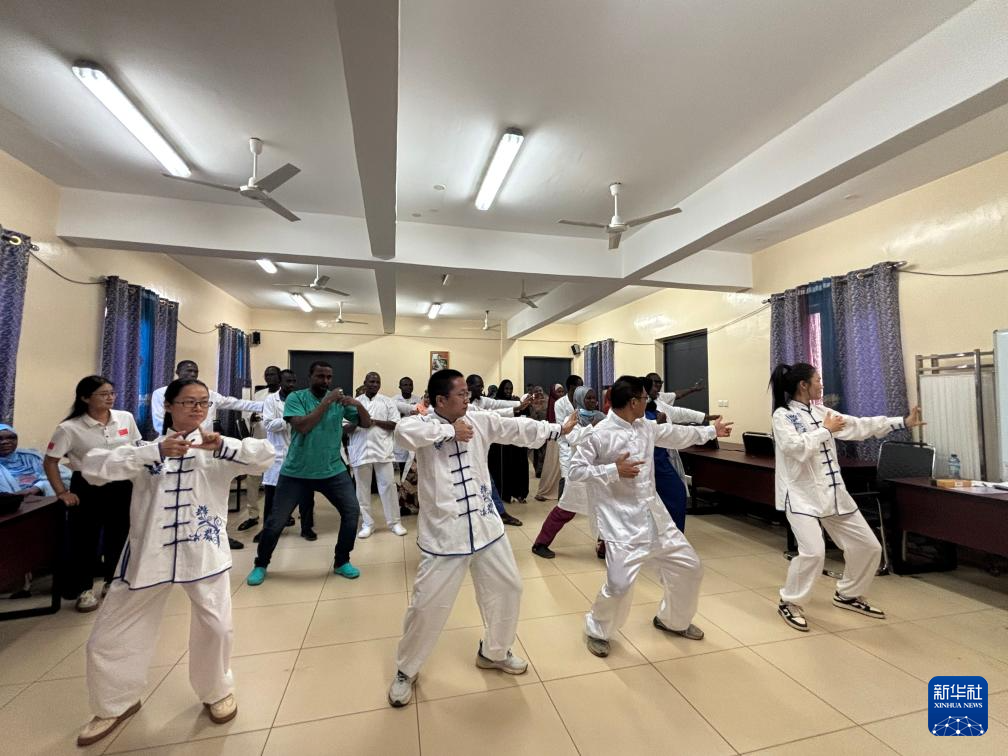 6月27日,在尼日尔首都尼亚美,第24批援尼日尔中国医疗队开展八段锦现场教学(手机照片)。新华社发(第24批援尼日尔中国医疗队供图)