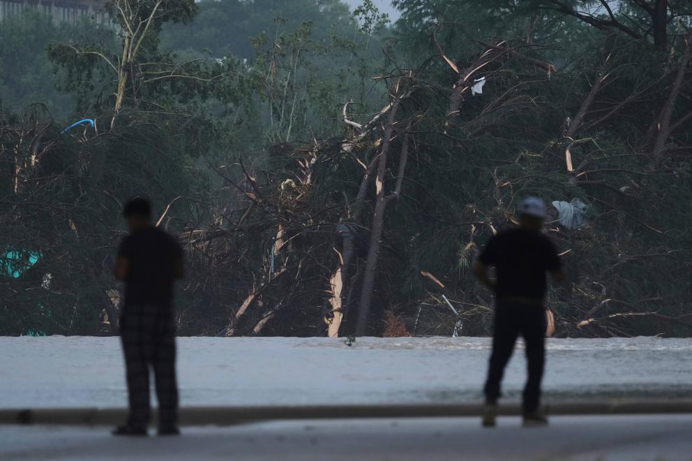 7月4日,在美国得克萨斯州克尔维尔市,人们在瓜达卢普河沿岸查看。新华社/美联