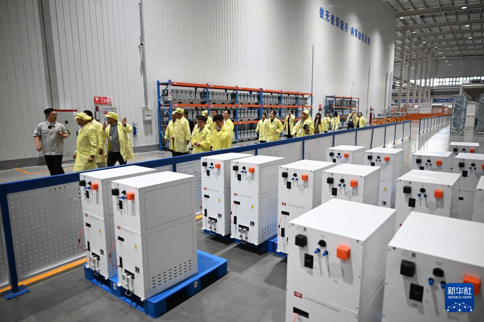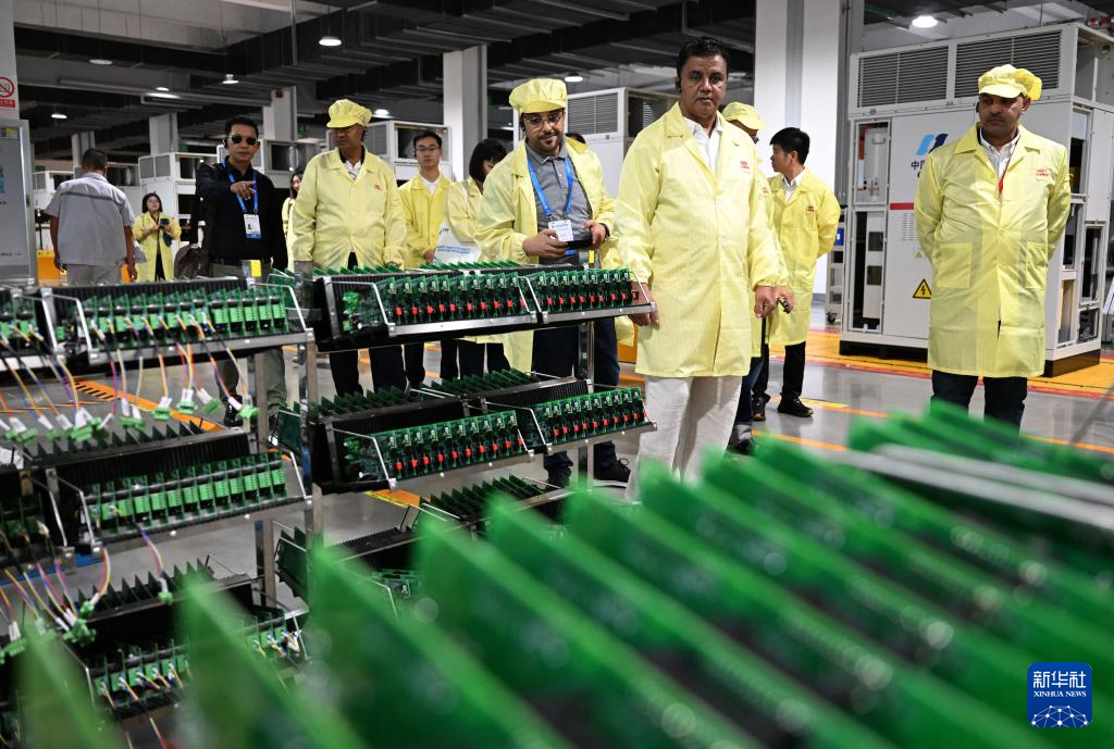 7月23日,上海合作组织媒体智库峰会与会嘉宾在位于河南许昌的许继电气股份有限公司参访。新华社记者 李嘉南 摄