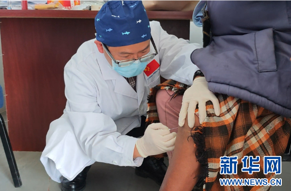 左昌俊医生进行小针刀操作(中国援莱索托医疗队供图)