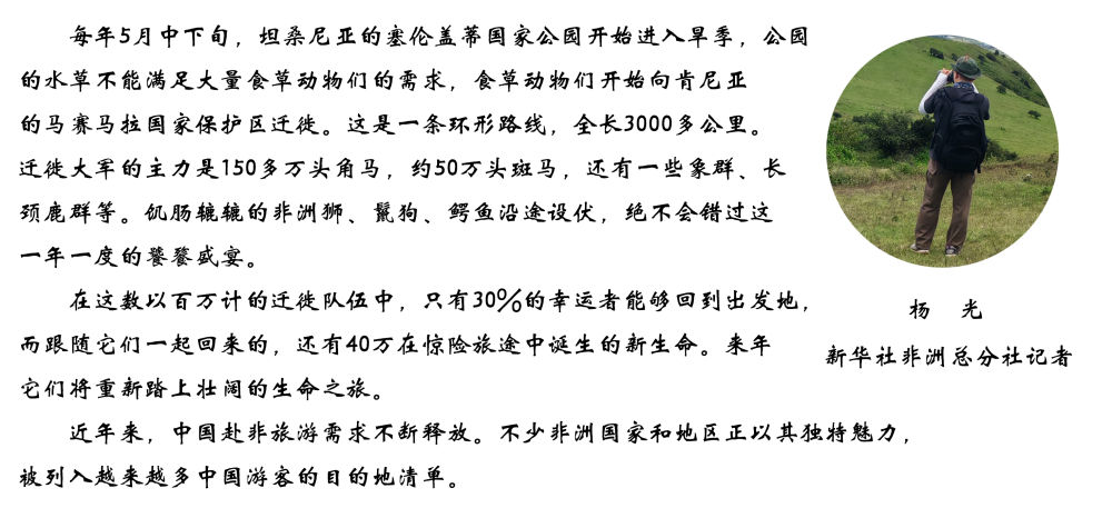 随着暑期到来,出游热来临。记者检索在线旅游平台的相关数据后发现,今年暑期出境游预订人次同比增长近五成,其中前往非洲的人数同比增长约103%。到东非看野生动物大迁徙成为今夏人们出境游的一大选择。
