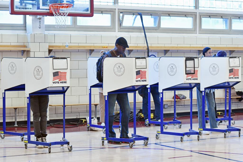 2024年11月5日,选民在美国纽约曼哈顿一处投票站填写选票。新华社记者李睿摄