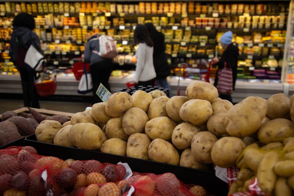 3月28日,顾客在美国纽约市一家超市购买食品。新华社发(郭克摄)